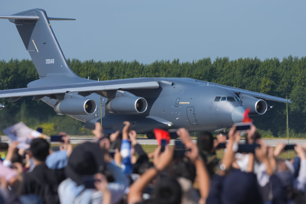 ↑9月19日,观众在现场拍摄运油-20A。新华社记者 许畅 摄