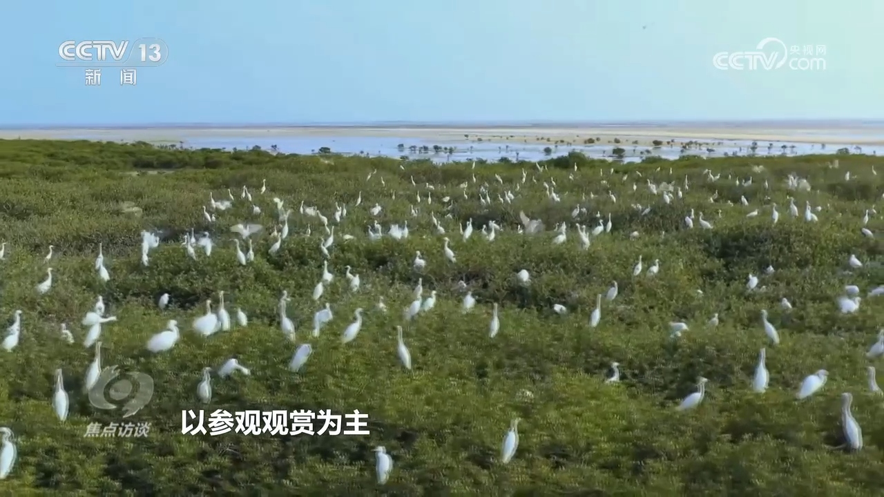 记者拍到的唐家湾的海草名为贝克喜盐海草,是被国际自然保护联盟列为与大熊猫同等级别保护的易危物种,这片海草床是珠江口仅剩不多且重要的近岸典型海洋生态系统。就在记者拍摄海草时,几只白鹭正飞过来觅食、跳舞。