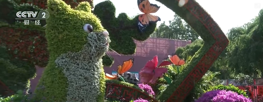 来到花坛的背面,又是另一番景象,这个是由不同花材搭建的可爱的景山猫,与背景的牡丹、蝴蝶等共同构成一幅生动和谐的自然画卷。