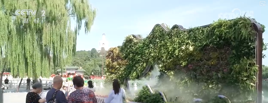 在北海公园,一处立体花坛微缩景观复原了昔日皇家园林的殿宇,大气恢弘。这个“一池三山”的主题花坛,采用无土装置技术勾勒出三山轮廓,搭配可控式雾气系统,烘托出云雾缭绕的氛围。