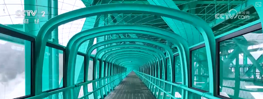 游客们从桥下乘坐这部全长207米的玻璃观光电梯,很快就可以达到这个玻璃观光大厅。大家要是觉得从这里往下看不够刺激,那可以往下跳。这里有低空跳伞、高空蹦极等低空运动业态,在600多米高空玩的就是心跳。