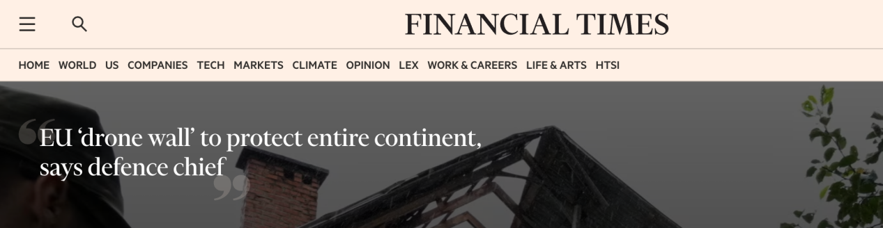 建设“无人机墙”这个提议最早出现在今年9月10日,欧委会主席冯德莱恩在欧洲议会上发表“盟情咨文”时提到,建设欧盟东翼监测机制,发展实时太空监测能力,并采纳波罗的海国家的倡议建设“无人机墙”。9月的最后一周,在分发给成员国的一份文件中,欧委会将这堵“墙”描述为一条由多层次先进系统组成的防线,具备探测、跟踪和拦截无人机的能力。
