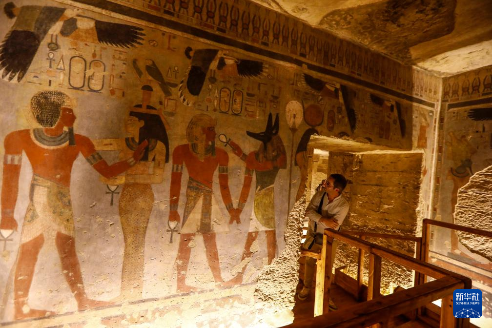 历经多年修复,古埃及法老阿蒙霍特普三世的陵墓4日首次正式向游客开放。该陵墓的历史可追溯至3000多年前,饱受岁月风霜和劫掠破坏。阿蒙霍特普三世的陵墓坐落于埃及南部帝王谷西侧,与卢克索市隔河相望,毗邻法老阿伊的陵墓,墓内壁画尤为精美,是帝王谷中规模最大的陵墓之一。