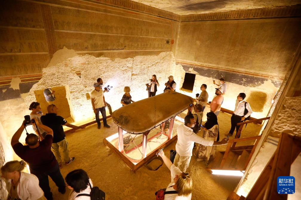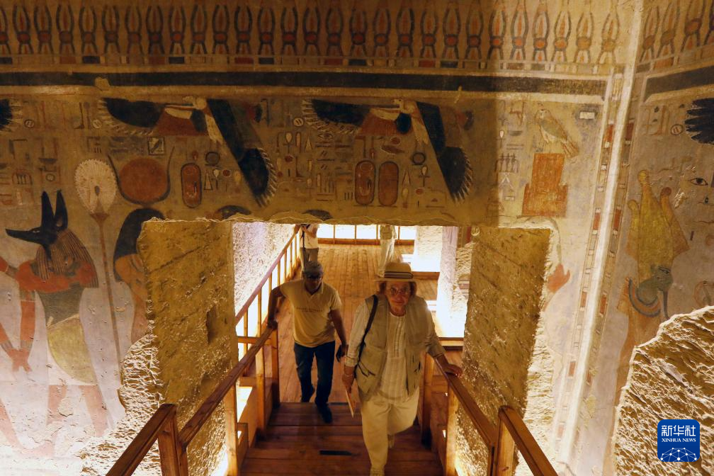 10月4日,游客在埃及卢克索帝王谷的阿蒙霍特普三世法老墓内参观。