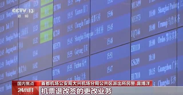首都机场公安局大兴机场分局公共区派出所民警庞博洋:于是我立即电话联系谭某,对方是一个小女孩,她说现在正在进行一个机票退改签的更改业务,在航空公司客服的指导下,通过屏幕共享进行信息的填写。我们一听立马意识到这可能是一场电信诈骗,于是告诉她不要再进行任何的操作,也不要再跟这个客服联系,我们民警马上到达现场。