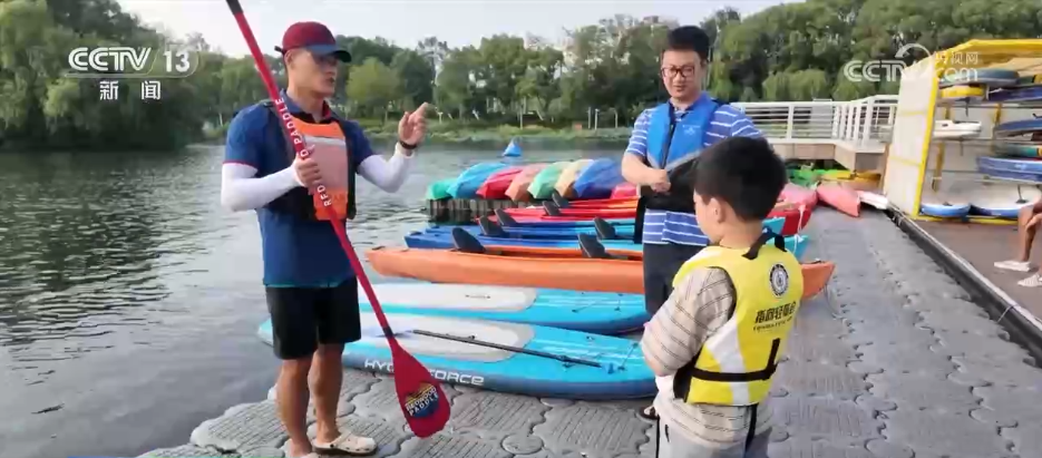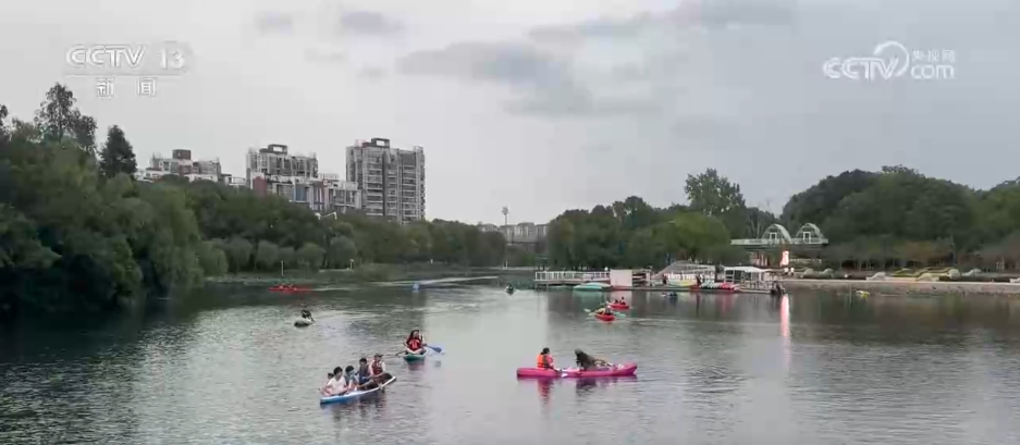 秋高气爽,碧水微澜。在上海杨浦区的一处体育公园,色彩鲜艳的皮划艇在秋日的碧波上荡漾,人们在城市中央的亲水河道中,体验“荡起双桨”的别样乐趣。