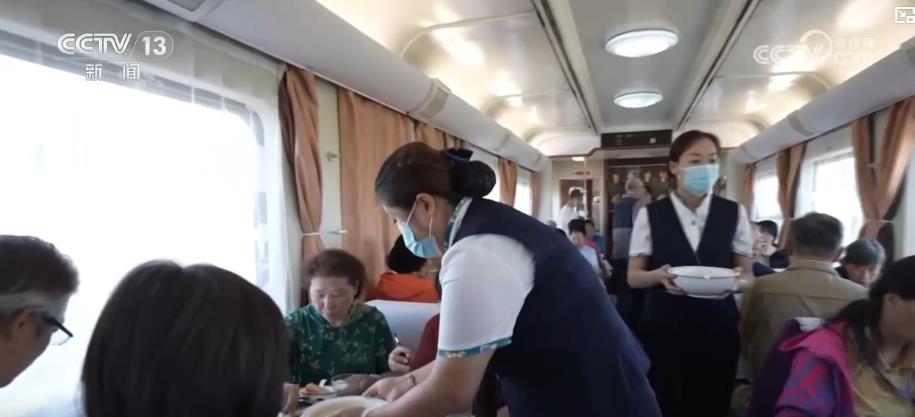 为了保障老年旅客的出行安全,这趟列车进行了适老化服务提升,安装了防滑软垫和硅胶扶手,并配备了老花镜、放大镜、常用药品等物品,还开辟车站专用通道,方便银发旅客上下车。在饮食方面,推出了适合银发游客的低糖、低盐、低脂的特色营养套餐。