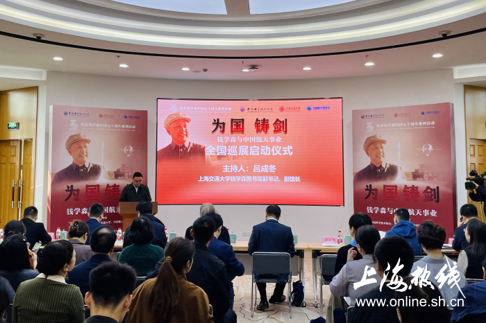 上海热线10月29日讯:10月28日,为纪念钱学森归国70周年,庆祝我国首次“两弹结合”试验成功59年,“为国铸剑——钱学森与中国航天事业”展览全国巡展在上海交通大学启动。此次巡展由中国科学技术协会、上海交通大学、中国航天基金会主办,并由多个单位联合承办,以钱学森的母校上海交通大学为起点,计划走进全国高校、科研院所、中小学校和科技场馆,全面弘扬“爱国、创新、求实、奉献、协同、育人”的科学家精神。