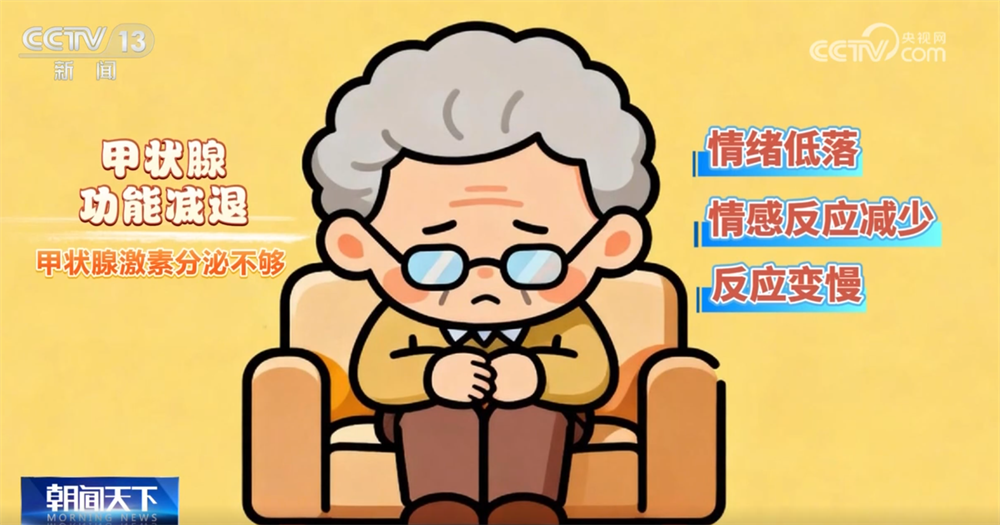 内分泌疾病中,甲状腺功能减退,这会让老人甲状腺激素分泌不够,进而导致情绪低落或情感反应减少,反应也比以前慢半拍。