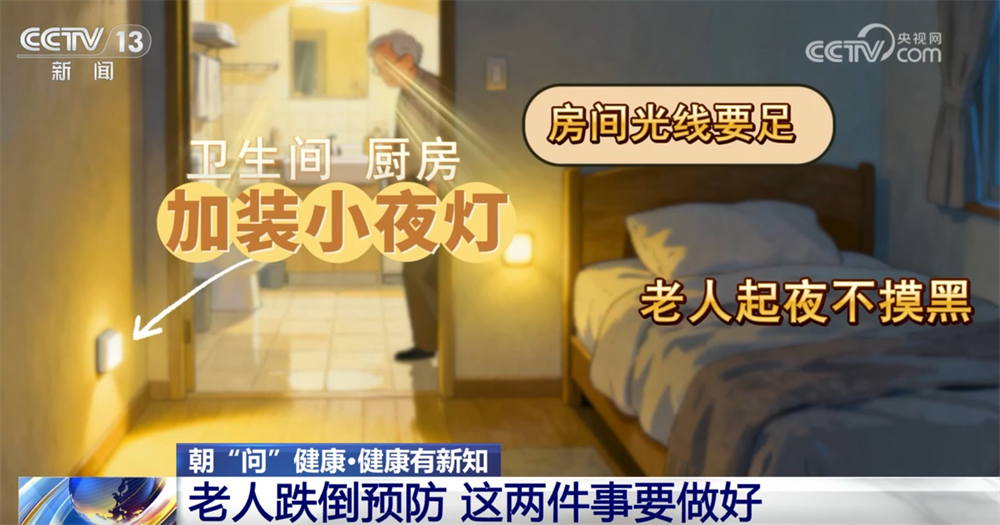 家庭是老人跌倒的主要场所,子女可以这样改:清理客厅、走廊的杂物,比如电线、凳子,别挡住走路的通道;房间光线要足,尤其是卫生间、厨房,晚上加装小夜灯,老人起夜不摸黑;地面要保持干燥,卫生间可以安装扶手和防滑设施,避免沾水打滑。