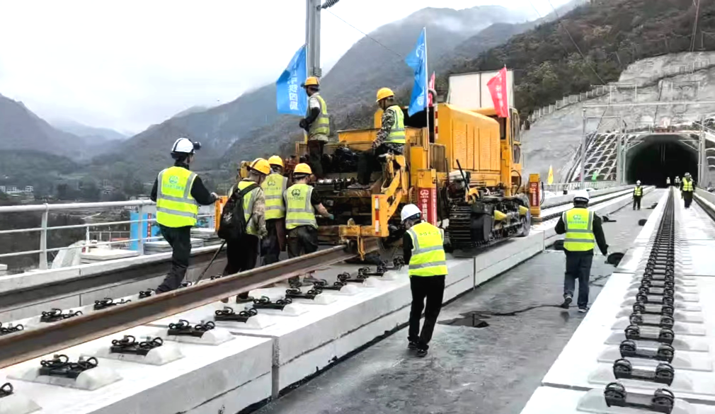 工程人员通过优化作业流程,实现道砟预铺、轨排铺设、扣件安装等工序无缝衔接,轨道铺设精度控制在毫米级,单日最高铺轨10公里,为全线铺轨顺利完成提供了有力保障。