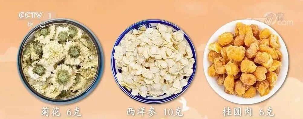 取6克菊花,10克西洋参,6克龙眼肉(桂圆肉),进行煎煮代替水来饮用,每天不超过2000毫升。