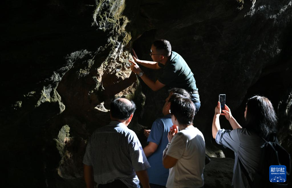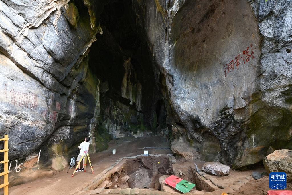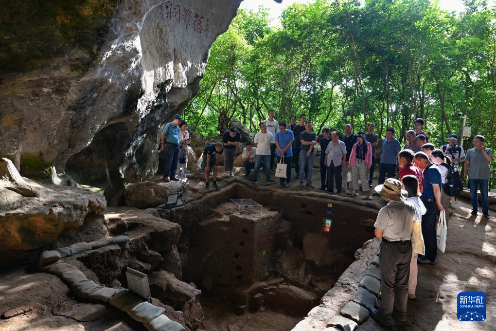 11月8日,考古专家在三亚落笔洞遗址观察发掘现场。新华社记者郭程 摄