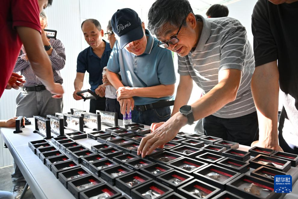 11月8日,考古专家在三亚落笔洞遗址观察出土标本。新华社记者郭程 摄