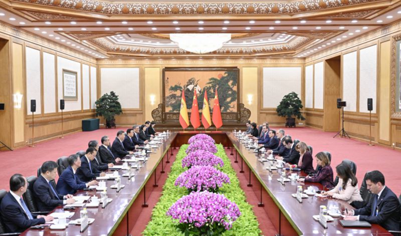 习近平强调,中方珍视同西班牙的传统友好,重视西班牙在国际和地区事务中的独特作用,愿同西班牙一道,携手打造更有战略定力、更富发展活力、更具国际影响力的全面战略伙伴关系。双方要进一步坚定相互支持,保持高层交往势头,加强战略引领,确保两国关系始终走在正确道路上。要进一步推进务实合作,中方愿进口更多西班牙优质产品,挖掘新能源、数字经济、人工智能等新兴领域合作潜力,扩大相互投资,打造更多标志性项目。双方还可以优势互补,共同开拓拉美等第三方市场。要进一步促进民心相通,加强文化教育领域交流,相互支持办好各自在对方国家的文化和语言机构。中方将继续延长实施对西免签政策,便利人员往来,让两国民众越走越亲。