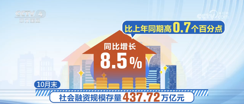 11月13日,中国人民银行发布10月金融数据。10月,社会融资规模增速保持在较高水平,持续为经济回升向好创造适宜的货币金融环境。