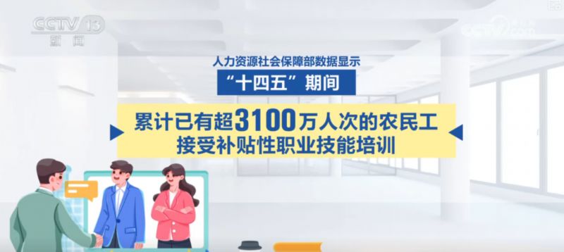 人力资源社会保障部数据显示,“十四五”期间,累计已有超3100万人次的农民工接受补贴性职业技能培训。