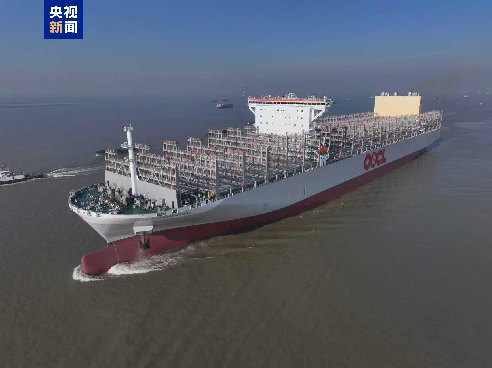 “巨无霸”出江!超大型集装箱船在江苏南通试航