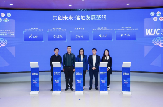 闭幕式上还举行了“携手启航·入驻合作签约”和“共创未来·落地发展签约”仪式。科创集团党委副书记、总经理段志刚与2家参赛企业签署场地入驻意向书,将为获奖企业提供办公场地优惠;五角场街道党工委副书记、办事处主任邵晓燕与4位获奖代表签署项目落地意向书,以赛事为纽带,推动创新创业成果落地生根。