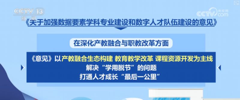 在深化产教融合与职教改革方面,《意见》以产教融合生态构建、教育教学改革、课程资源开发为主线,解决“学用脱节”的问题,打通人才成长“最后一公里”。