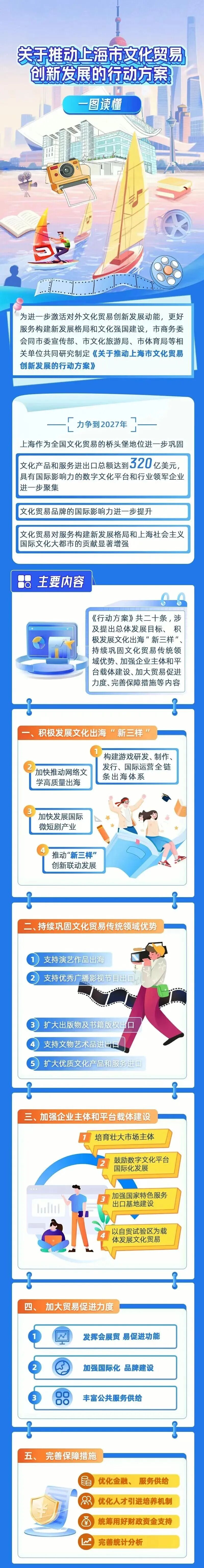 为进一步激活对外文化贸易创新发展动能,更好服务构建新发展格局和文化强国建设,市商务委会同市委宣传部、市文化旅游局、市体育局等相关单位共同研究制定了《关于推动上海市文化贸易创新发展的行动方案》,现已印发。