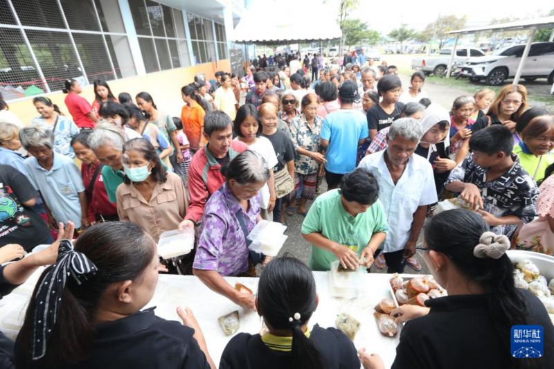 12月10日,民众在位于泰国沙缴府的一处避难所排队领取食物。