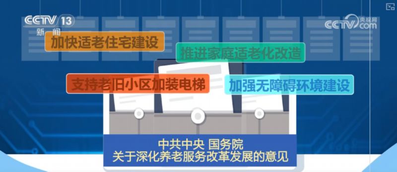 2024年12月30日印发的《中共中央国务院关于深化养老服务改革发展的意见》提出,加快适老住宅建设,推进家庭适老化改造,支持老旧小区加装电梯,加强无障碍环境建设。