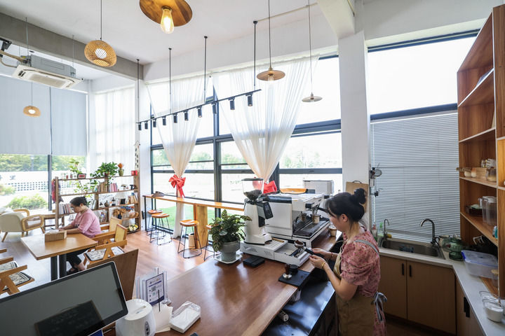 2025年8月27日在浙江省湖州市长兴县虹星桥镇宋高村稻香伴日营地内拍摄的咖啡屋。这是宋高村做优全域土地整治后的农文旅新尝试,集餐饮、旅游、农业和文化于一体。新华社记者徐昱 摄
