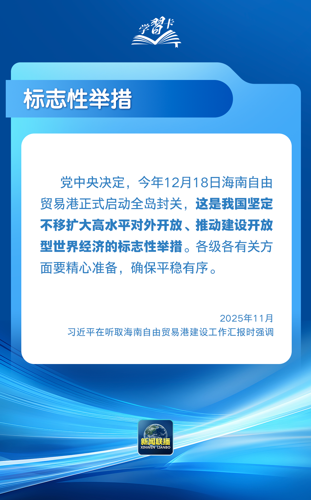 12月18日,海南自由贸易港正式启动全岛封关。这是海南自贸港开放发展新阶段的开始,也是中国不断推动对外开放新的缩影。