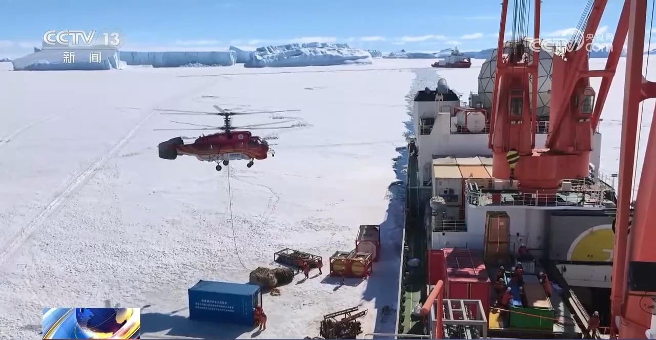 中国第42次南极考察队中山站卸货作业负责人王焘:我们这次海冰运输作业的时间非常有限,所以特别安排将直升机无法吊运的科考和后勤保障的重型装备,通过海冰运输的方式实现登陆。 此次海冰运输作业一共卸运70撬,总重量约700吨。