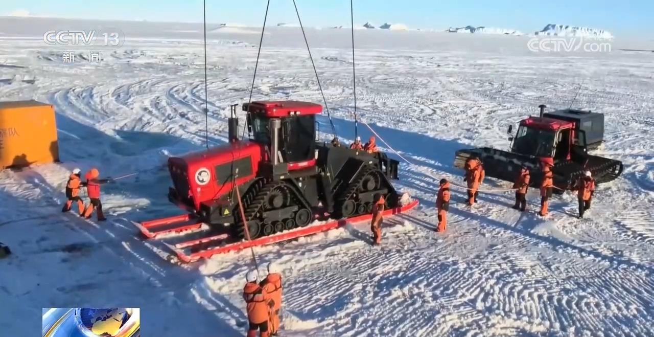 经过4个多小时的努力,大家给这两台重型装备,也都分别穿上了特制的“大鞋子”,由雪地车拖着奔向南极大陆。据介绍,这两个大家伙,在南极考察中将发挥重要作用。
