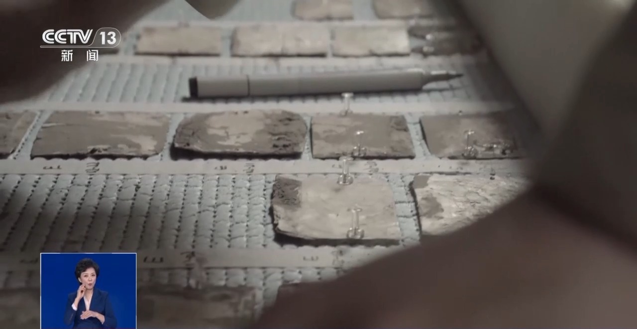 故宫博物院古建部遗产地监测组张小古:这一个建筑,从肉眼上看和监测的数据来看都是最潮湿的一个房间。挖的时候,马上就发现了一块琉璃的扣板,一个烟道的形状,从南往北顺着挖出来了。能看到烟道的形制,通过中间把热气往两边送,记载里也是有这样的形制的。