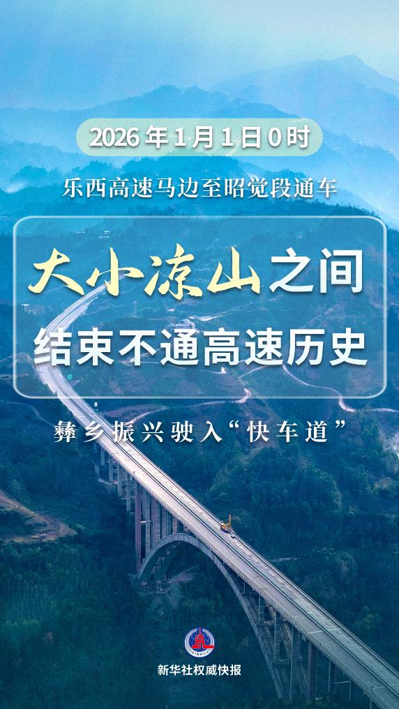 2026年1月1日0时,四川乐山至西昌高速公路马边至昭觉段将通车。