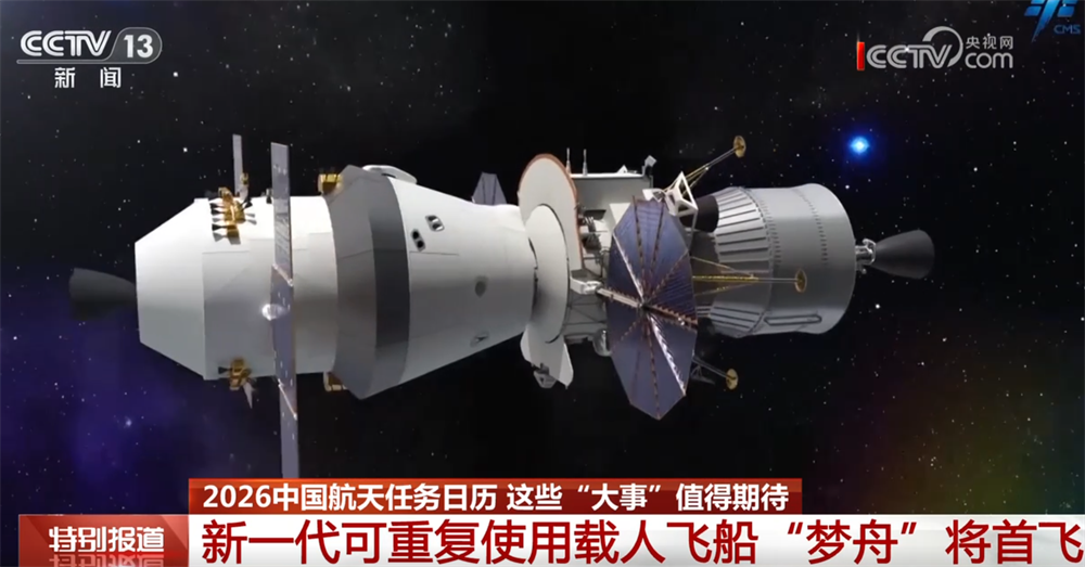2026年,中国载人航天工程还将实施天舟十号货运飞船的发射,神舟二十三号飞行乘组中的一名航天员将开展1年以上的太空长期驻留。而最引人关注的,当属我国新一代载人飞船“梦舟”的首飞。它是在神舟飞船基础上的全面升级,未来不仅会接替神舟承担空间站航天员天地往返的任务,更将作为载人登月的梦想之舟,带着中国人走向月球。它的首飞,值得期待!
