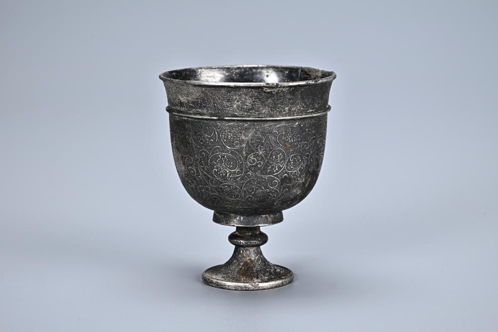这是考古工作者在马三娘墓葬中发现的高脚杯。陕西省考古研究院供图