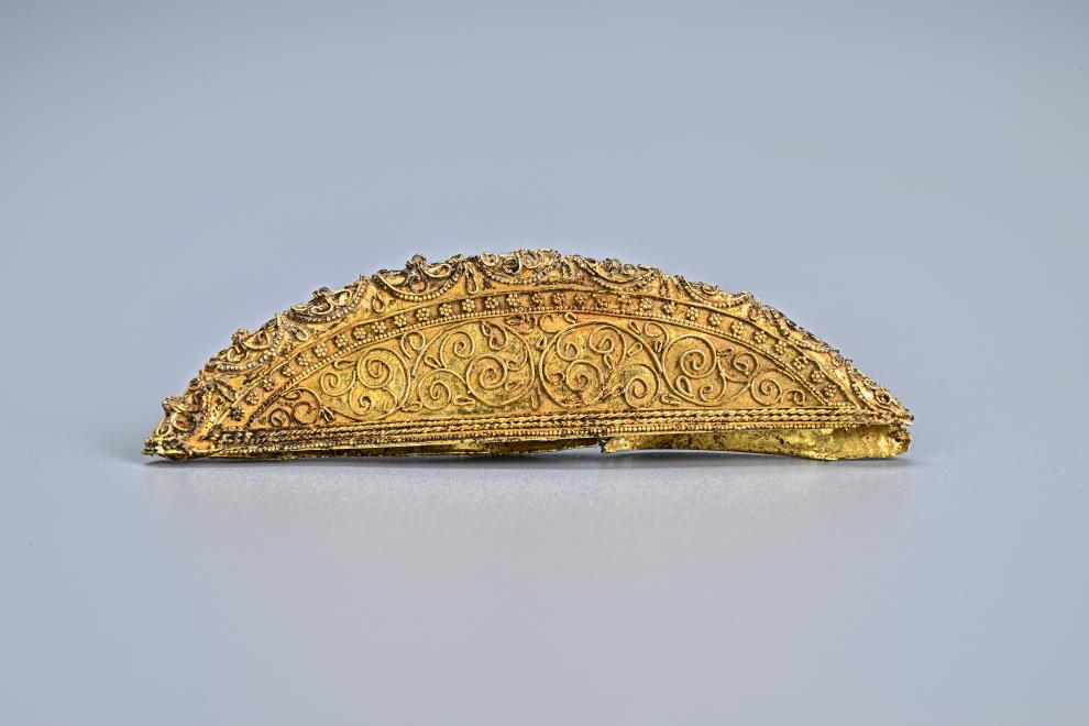 这是考古工作者在马三娘墓葬中发现的金梳背。陕西省考古研究院供图