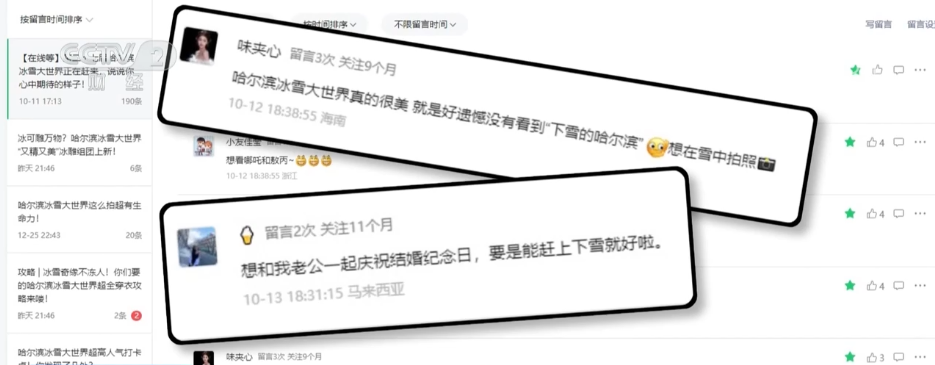 而这个备受游客喜爱的飘雪中华巴洛克景观正是一次“听劝”的成果。此前,不少网友曾在网上留言表示:哈尔滨冰雪大世界真的很美,就是遗憾没看到“下雪的哈尔滨”,好想在雪中拍照。对此,设计师的回应很简单:安排!相关工作人员表示,如何能满足游客的需求才是他们应该做的,今年设计的时候也进行了网络征集,没想到今年的飘雪长廊能够这么受游客们欢迎。