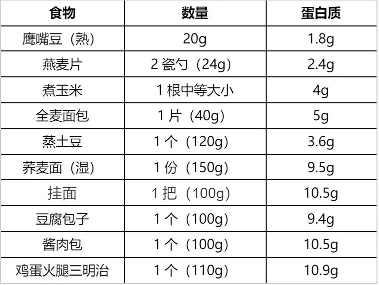 蛋白质=1个酱肉包(10.5g) 1碗燕麦牛奶(9.9g) 1袋即食豆干(5.3g) 6~8 颗圣女果(1.3g)=27g