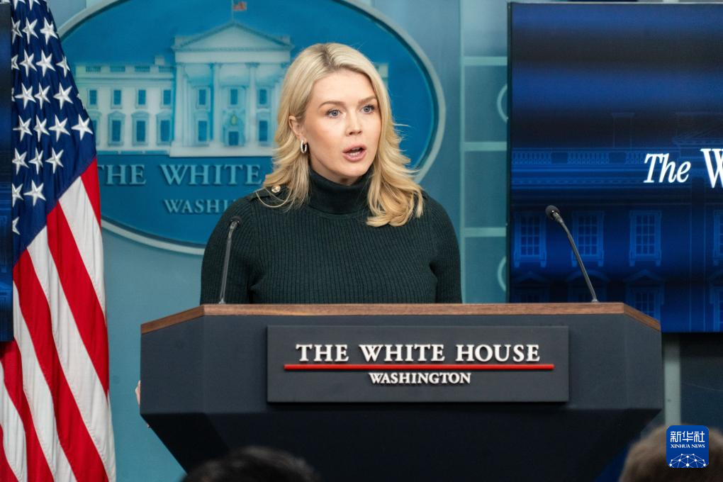 1月26日,在美国首都华盛顿白宫,白宫发言人莱维特出席记者会。新华社发(李源清摄)