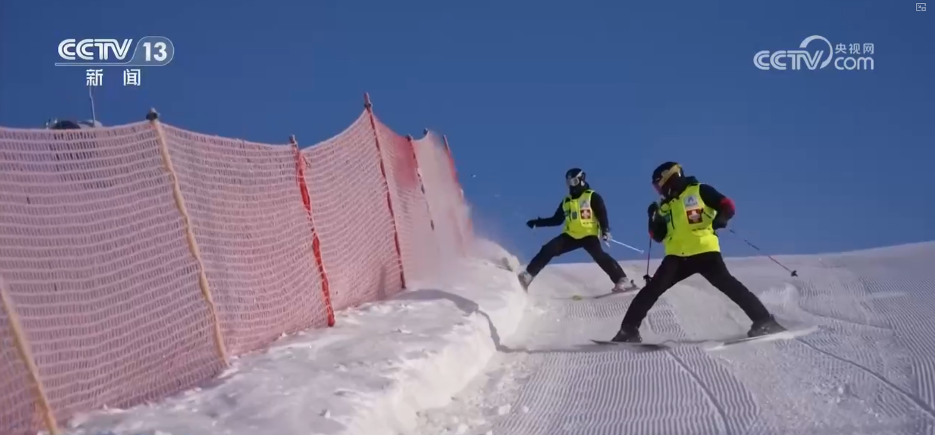 每天清晨,踩上雪板,沿着雪道一边滑行,一边清理红色护栏上的雪霜,这是新疆小伙玛那普汗忙碌的日常,他是阿勒泰将军山滑雪场的一名滑雪巡救员。他说:“这两天天气比较冷,防护网上会出现一些这样的雪霜,影响视线,必须要把它给处置掉,拍掉。把每一条雪道都巡查完毕,该恢复的一些防护网,提示牌这些都要恢复到位。一个小时之内要完成这些任务,游客上来之前,一些安全隐患都要排查和除掉。”