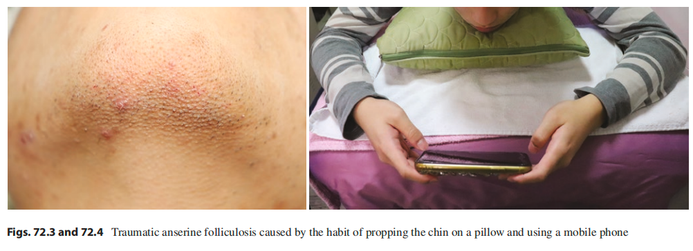 通过搜索文献,我们可以发现更多导致创伤性鹅皮样毛囊病的“现代陷阱”: