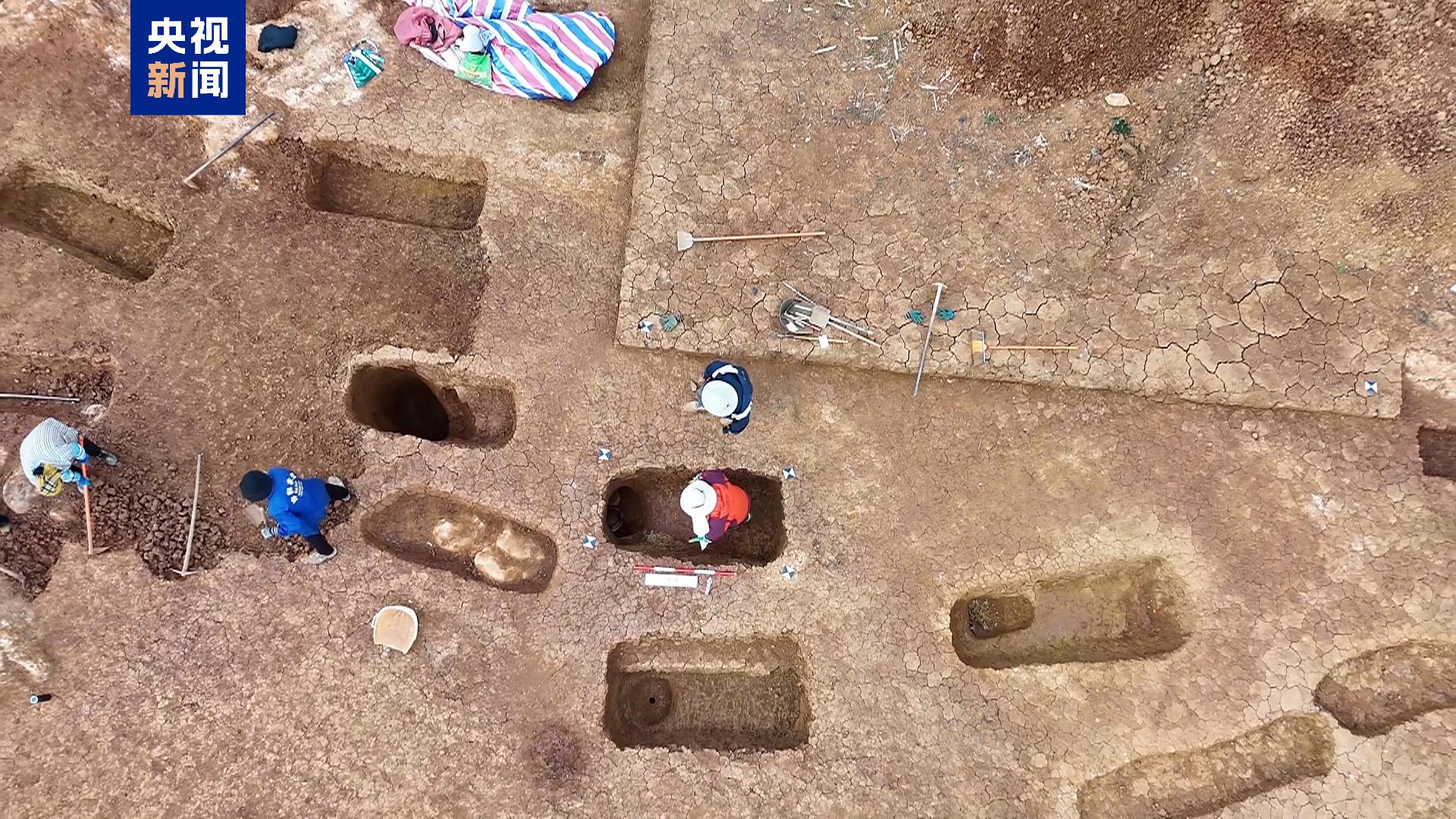 2025年10月,经国家文物局批准,由红河州文物管理所联合云南省文物考古研究所、武汉大学历史学院、弥勒市文物管理所等单位组成联合考古队,对墓地展开了抢救性发掘,两个多月的系统发掘,本阶段共清理各类遗迹61处,其中房子一座,用火遗迹一处,灰坑9座,土坑墓50座,出土各类器物321件(套),质地有陶器、青铜器、铜器和制器、铁器、玉石器等。