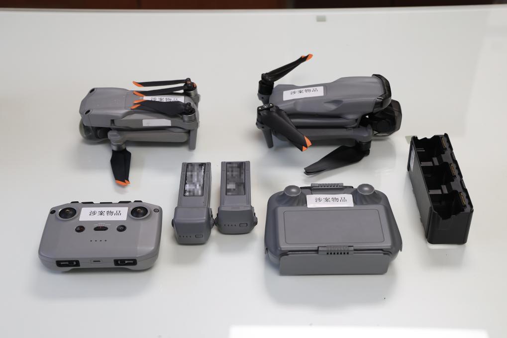 这是警方查获的无人机、遥控设备等涉案物品。新华社记者毛思倩摄