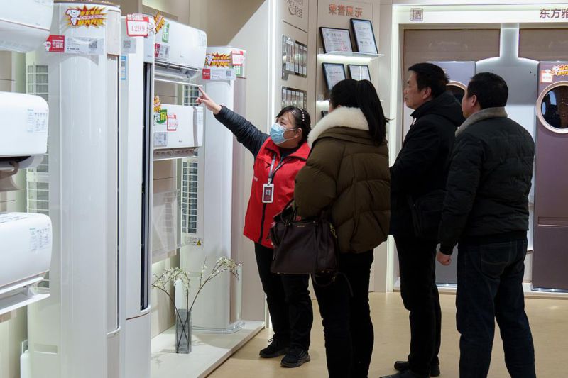 15日一早,河北石家庄的某大型电器卖场就挤满了来“换新”的市民。冯女士刚刚用一套“组合拳”,把家里用了十二年的冰箱、洗衣机、空调全部换新。