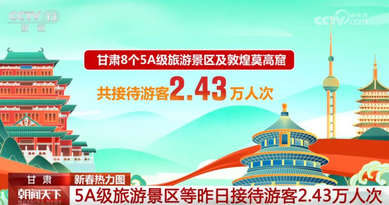 记者从甘肃省文旅厅了解到,2月16日,甘肃假日市场以探亲游、周边游、乡村游、民俗游为主,甘肃全省8个5A级旅游景区和敦煌莫高窟共接待游客2.43万人次。