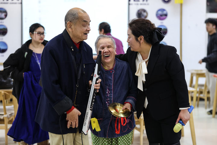 养老院的老人在欣赏联欢会。本组照片均为新华社记者潘昱龙摄