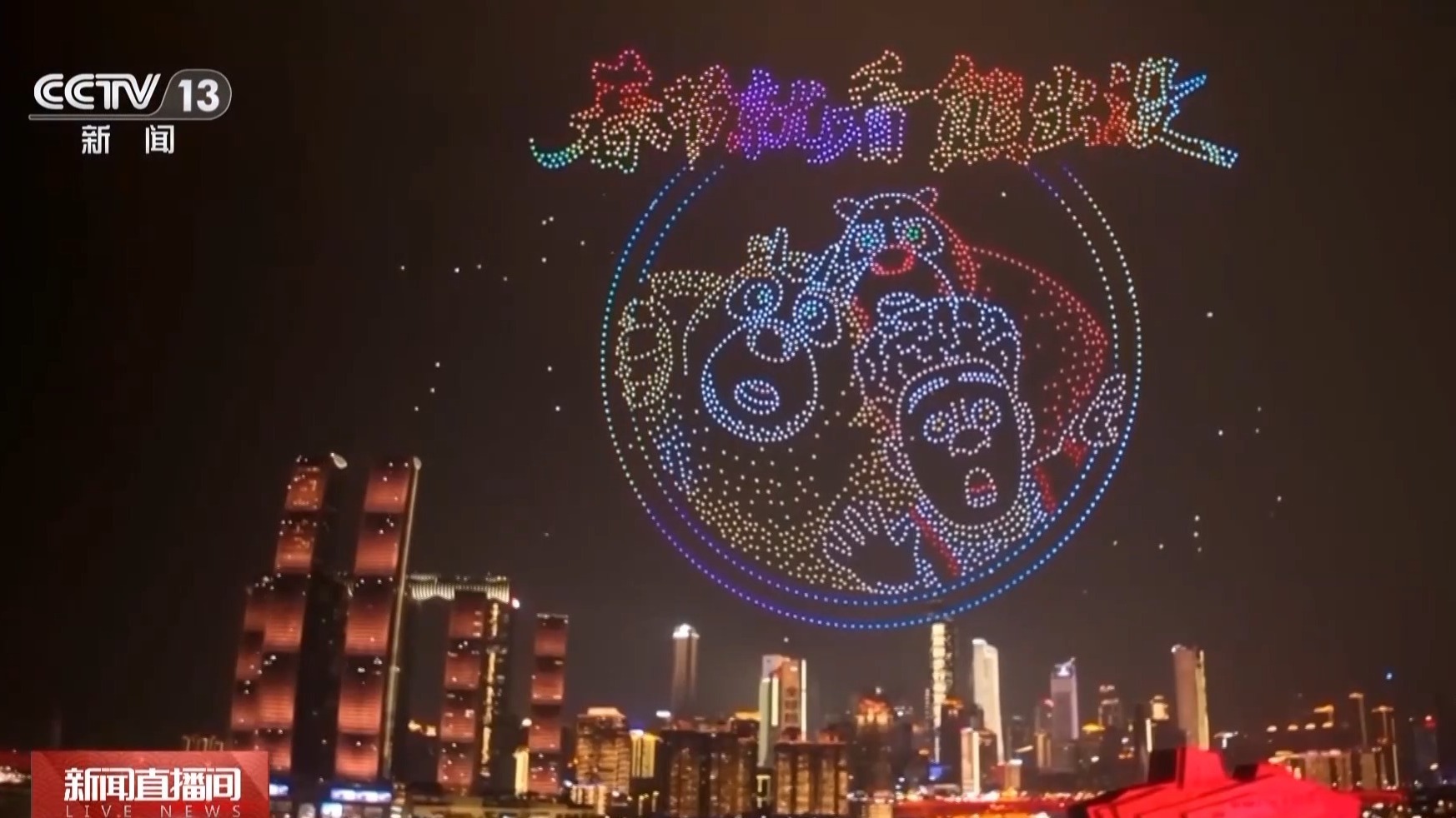 在重庆,“电影+文旅”的融合实践持续落地生根。春节档唯一的动画电影 《熊出没·年年有熊》中融入了很多重庆元素,重庆的一家影院推出了各种周边产品和主题活动。在“新韵重庆”无人机灯光秀表演上,“春节就看熊出没”和“全家一起更欢乐”的机组造型出现在夜空上,也为这个春节增添了很多童趣。作为《熊出没》的主要取景地,几天前,在重庆两江四岸的楼宇外墙上,也上演了《熊出没》主题楼宇灯光秀“空中连环画”。