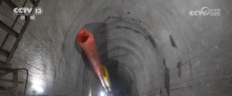 国铁云桂铁路云南公司工程管理部高级工程师王博介绍,这根红色的管子就是机械制冷管,它类似于给这个隧道安装了一个空调,让掌子面工人工作的环境能够降到28℃。