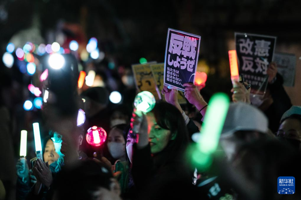 当晚的集会有近千人参加。抗议者手举写有“反对战争,维护宪法”“不要战争不要高市”“不能容忍高市政治”等字样的牌子,高呼“反对修宪”“守护和平”等口号,对高市企图修宪表达不满。