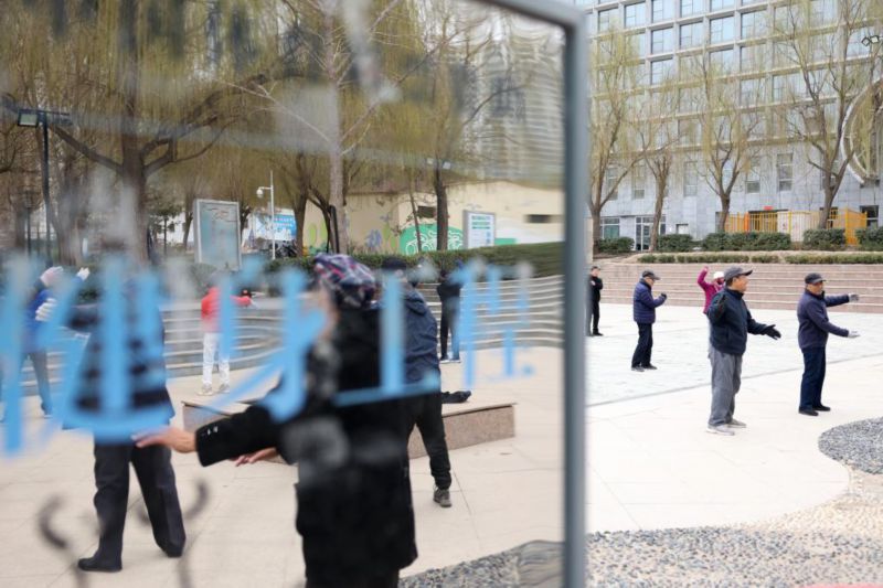 3月18日,市民在兰州市体育公园的广场上锻炼身体。新华社记者陈斌 摄